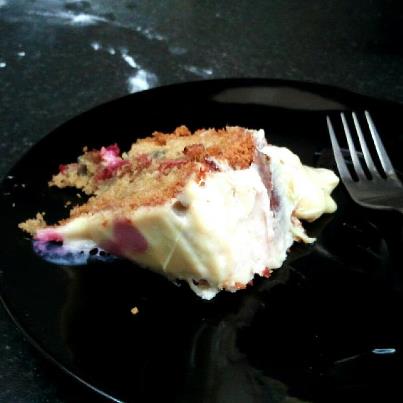 As it happens, I haven't had the chance to stock up on eggs since the great creamy raspberry-coconut cake disaster of '13, so in my hour of need, made a banana substitution